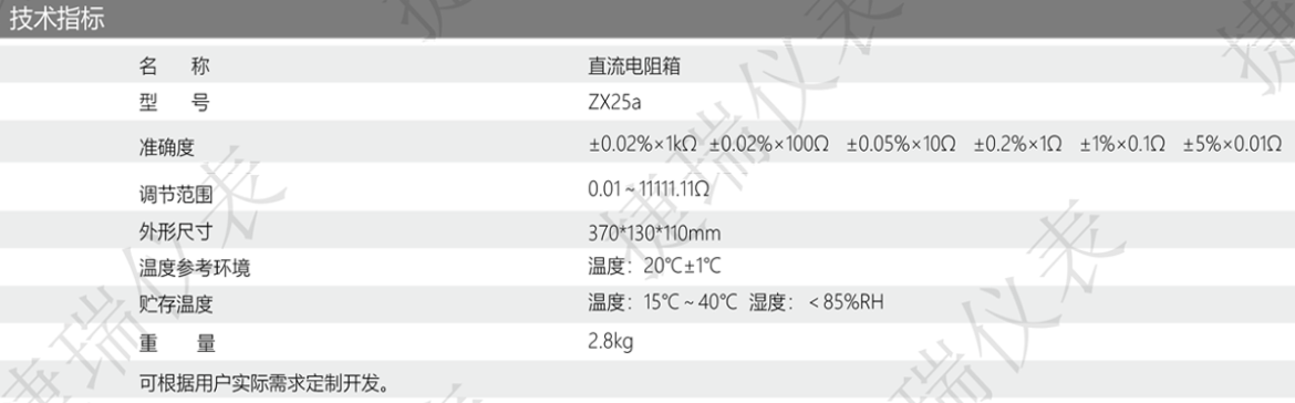 ZX25a型/ZX54a型直流电阻箱依据中华人民共和国行业标准JB/T8225-1999《实验室直流电阻器》所规定的技术条件制造。符合国际标准IEC477-1974《实验室直流电阻器》所规定的技术要求