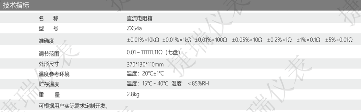 ZX54a型/ZX25a型直流电阻箱依据中华人民共和国行业标准JB/T8225-1999《实验室直流电阻器》所规定的技术条件制造。符合国际标准IEC477-1974《实验室直流电阻器》所规定的技术要求